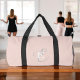 A stylish unique monogram design featuring your name and monogram accents this custom duffel bag with classic serifs and a more ornate script typography in a lovely layout. The three elements blend together beautifully to create your own personal branding logo. Shown here with a soft blush pink background with monogram elements in white and grey. A great choice for gym and workout days, dance class, and travelling to your next adventure! Makes a wonderful gift for her.