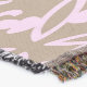 A quality printed throw has its advantages. This is a much finer weave throw than its loopier cousins, and though lighter, it is worth the investment for custom room accessorizing. The back is much prettier than the typical brown, and the fringe on the long sides very vivid, the selvage nicely done. Before photographing, I washed the throw in cold water, delicate, with a thicker woven throw the same size. On tumble dry low, this throw was dry in half the time as the other. This is a very practical quality if you use throws for furniture covers or to wrap up in frequently. The sleekness of the fabric makes it a great layer for accenting or protecting without the feeling of sitting on too much stuff. Perfect for napping or when you feel a light chill coming on. The color printing is beautiful and on this fabric, matched the design and color of my Photoshop image. This is an advantage for blending room fabrics and colors. The fringe on the short sides prints the colors from the design image and therefore varies from the side fringe. I streaked a white fractal line through the plaid pattern to give the illusion of weaving. This printed as crisp as an illusory thread, and put some white in the short side fringe, showing another advantage of print vs loomed- for artistic purposes, line lines, detail, and color integrity can be planned and preserved. My loomed throws have color limitations and more of a needlepoint texture. Print throws reproduce an exact image. The throw felt a little stiff straight out of the package, but this went away in the first delicate wash. Of course I searched the wash water for ink or bleeding and there was none.