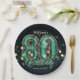 Stylish Vibrant Teal and Gold 80th Birthday Paper Plate