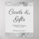 A simply stylish wedding tabletop sign for those that prefer a clean vintage look. Your customised text is printed on a torn edge centre block overlay, with a vintage distressed pewter floral background. Vintage style fonts have been chosen to complete the look, but can be easily changed. Use for your Cards & Gifts table, Favours, Dessert Bar and more.