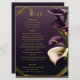 Stylish Violet Purple and Gold Calla Lily Wedding Menu