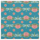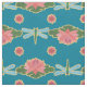 Stylish Water Lilies and Dragonfly on Blue Fabric