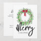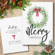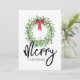 Stylish Watercolor Merry Christmas Wreath No-Photo Holiday Card