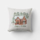 Celebrate the season with this cosy, hygge throw pillow featuring a watercolor scandi house framed by pine trees and a festive green wreath. The greeting is printed in traditional green Nordic festive wreath style, using elegant serif typography for a timeless look.