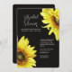 Stylish Watercolor Sunflower Black Wedding Shower Invitation