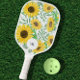 Stylish Pickleball Paddle featuring watercolor yellow sunflowers on white background and your monogram.