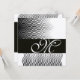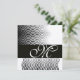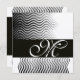 STYLISH WAVES MONOGRAM,black white,silver metallic Invitation
