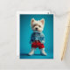 Stylish Westie Pup in Denim and Sneakers Postcard