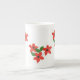 Stylish White Bone China Mug Red Floral Design