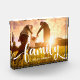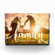 This stylish and fun photo block features the word "family" in modern and whimsical white text, with room for your family name. Your favourite family photo fills the background.