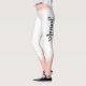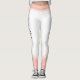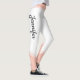 These white and light pink modern workout leggings feature an elegant white floral design on the ankles and calves and a pink stripe on the waistband.