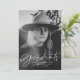 Modern graduation announcement featuring the graduate's vertical photo with "Graduate" in a stylish white script overlay. Personalise the front of the photo graduation announcement by adding the graduate's name, school name, and graduation year. The back of the trendy graduation announcement features a hand-drawn black and white pattern.