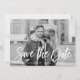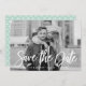 Set the tone for your upcoming wedding by announcing your date with our Stylish Script save the date card. The modern save the date card features a hand-lettered script font with a trendy mint green pattern on the back. Personalise the save the date announcement with your names, wedding date, city, and engagement photo for a design that is sure to impress!