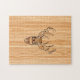 Stylish White Tail Buck Antlers Light Wood Grain Jigsaw Puzzle