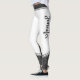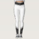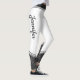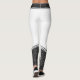These white modern workout leggings feature an elegant white floral design on a black background on the ankles and calves and plain black stripe on the waistband.