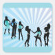 Stylish Women Silhouettes Teal Blue Fashion Square Sticker