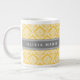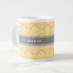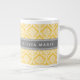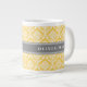 Stylish Yellow Damask Pattern with Grey Name Large Coffee Mug