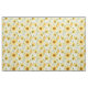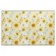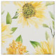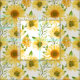 Illustration style graphic of yellow sunflowers with leaves and stems on white background, seamless repeat pattern