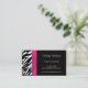 Modern and stylish zebra stripes business cards features black and white zebra stripes on the front and back and a pink accent border on the front. Stand out with these unique business cards. Perfect for variety of business types and professions. Available in a variety of colours and card stocks. Customise with your personal or business information. Click the "Customise it!" button to change the font style, text size, text colour and more!