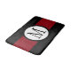 A simple design composed of a straight dark red line on a black background with a contemporary and modern circular customisable black & white monogram on top.
