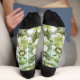 Delicate flowers and leaves in soft shades of green and white create a harmonious pattern, exuding a sense of calm and elegance. The floral elements are arranged gracefully against a pastel green background.