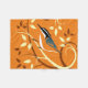 Stylized bird art of a Red Breasted Nuthatch on a swirl pattern branch with orange background