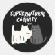 Su-purr-natural Cativity Funny Cat Pun Dark BG Classic Round Sticker