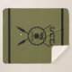 A black military "subdued" style depiction of a Maccabee's shield and two spears. The shield is adorned by a lion and text reading "Yisrael" (Israel) in the Paleo-Hebrew alphabet. Modern Hebrew text reading "Maccabee" also appears.