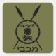 A black military "subdued" style depiction of a Maccabee's shield and two spears.  The shield is adorned by a lion and text reading "Yisrael" (Israel) in the Paleo-Hebrew alphabet. Hebrew text reading "Maccabee" also appears.  The Maccabees were Jewish rebels who freed Judea from the yoke of the Seleucid Empire. Chanukkah is not just a mid-winter festival featuring candles and fried delicacies, it celebrates a military victory, and securing religious freedom, over the Seleucid Empire. Additionally, the revolt was a civil war involving those Jews who were loyal to G-d and those who had adopted the Hellenism of the Seleucids.