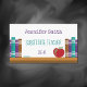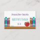 A simple business cards design with books and a red apple . They're perfect for people working in education (including teachers , substitute teachers , teacher aides , tutors , educators and more ) . The template makes it easy for you to personalise them with your name , title and other information . They are also available in black .