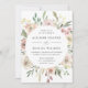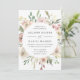 Elegant floral wedding invitations featuring your wedding details encircled by watercolor roses and leaves in muted shades of pink, ivory, mauve, and green. The reverse side displays a solid light pink background. Designed to coordinate with our Subtle Blooms wedding collection.