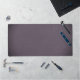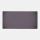 Subtle flowy scripted name on lightly vignetted mottled dusty plum purple desk mat that gives a look of faux suede.