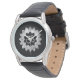 * A new age OM AUM buddhist hindu spiritual meditative subtle grey lotus flower mandala on a black background. The watch has a vintage black strap.