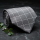 Elevate your wardrobe with understated sophistication in this charcoal gray silk necktie featuring a refined windowpane check pattern in subtle silver and black lines. Perfect for business meetings, weddings, evening events, or adding quiet luxury to navy, black, or light gray suits. The neutral tones keep it versatile and timeless. Premium silk ensures a flawless knot and luxurious drape all day. The ideal power tie for groomsmen, executives, and modern gentlemen who appreciate classic elegance.