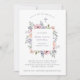These lovely baptism invitations feature a watercolor floral frame surrounded by dusty coloured roses in shades of purple, pink, blue, and greenery. There is also a small cross.