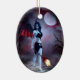 This design features A female demon on a eerie night sky background. red themed and foggy surroundings.