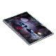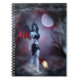 This design features A female demon on a eerie night sky background. red themed and foggy surroundings.