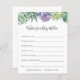 Have your shower guests fill out these adorable wishes for baby cards at your baby shower. Featuring watercolor green and purple succulents. Personalise the with Mummy-to-be's name and shower date.