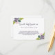 A perfect information insert card for directions or hotel accommodation details in our trendy succulent floral theme that is so popular today. Include with our matching invitation for a gorgeous coordinated look. A lovely bouquet of succulent plants in beautiful shades of soft green and olive, lavender plum and blush pink are inspired by the gorgeous colours of these amazing little plants. Soft purple hued text looks stunning against the crisp white background and the scalloped edge of the invitation adds interest and detail to the design. On the back, a small succulent flower and greenery. See all our other coordinating products in the "Succulent Bouquet II" line to create a beautiful matching wedding ensemble.