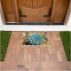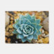 Rich with spiky texture, this aqua, seafoam green succulent is planted in a bed of tan pebbles.