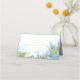 Gorgeous watercolor succulents folded seating card for weddings or any fine event. Shades of green and blue succulents accented in steel blue text and background.