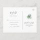 This succulent greenery | green wedding RSVP postcard is perfect for your boho sage green tropical floral wedding. The design features modern watercolor artwork, including light green eucalyptus, delicate fern, and classic succulent varieties, giving the design a simple, elegant secret garden feel, perfect for any spring, summer, fall, or winter wedding! Please feel free to contact us with any questions regarding the product's design; cheers!