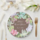 Add a touch of desert charm to your table decor with a design that captures the modern beauty of desert botanicals, making it ideal for a chic and memorable bridal shower suite. This paper plate features a lovely watercolor wreath, meticulously crafted with succulents in a delightful array of pale green, rich dark green, and delicate pink hues. These vibrant succulents pop beautifully against a soft brown background, creating a sophisticated and harmonious palette. Easily change the details to your own and if you would like to, change the font style, size, colour and placement.