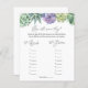 Bridal shower game card featuring a watercolor green and purple succulents. A fun way to interact with shower guests to guess the age of the bride and groom in the photos. Add a QR code to show guests the photos.