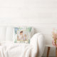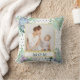 This elegant and trendy pillow features a frame with a glitter texture border and illustrations of succulents in soft shades of green for a chic effect. The background has a polka dots pattern. A square in the centre holds a family photo. The rectangle at the bottom includes the word "Mum". This pillow will make a sweet and unique Mother's Day gift or a gift for a new mum.