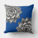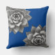 This throw pillow flaunts two grey succulents placed on a sapphire blue background.
