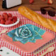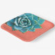 These lovely succulent plates will work for garden parties, engagement parties, bridal showers, weddings and more. Succulents are huge right now. This aqua one is placed on an orange lace background. You can edit the background colour, add text, font or font colour to suit your needs.