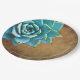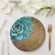 These lovely succulent plates will work for garden parties, engagement parties, bridal showers, weddings and more. Succulents are huge right now. This aqua one is placed on a rustic brown background. You can edit the background colour, add text, font or font colour to suit your needs.