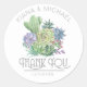 Unique fonts, colourful watercolor succulents and glittery backgrounds in a soft spring green are the highlights of these mix-and-match wedding products. This beautiful sticker has optional 'Thank You' text along with a template to edit the bride and groom's initials, a personal message and your wedding date. Search ID515 to see all the matching products in this set.