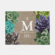 What's a garden without succulents? Place this among your plants at your front door for a lovely accent. This doormat features an assorted succulent flowers on the left and right sides of the doormat over a faux country burlap print background! Personalised with your own family name and monogram letter!